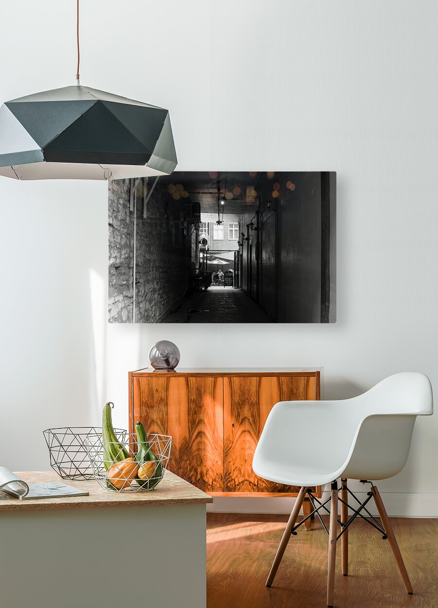 Cozy Restaurant In The Back Of An Alley  HD Metal print with Floating Frame on Back