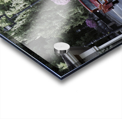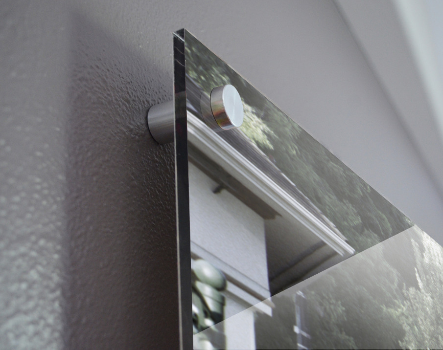 Impression sur acrylique avec entretoises ( cylindres métalliques )